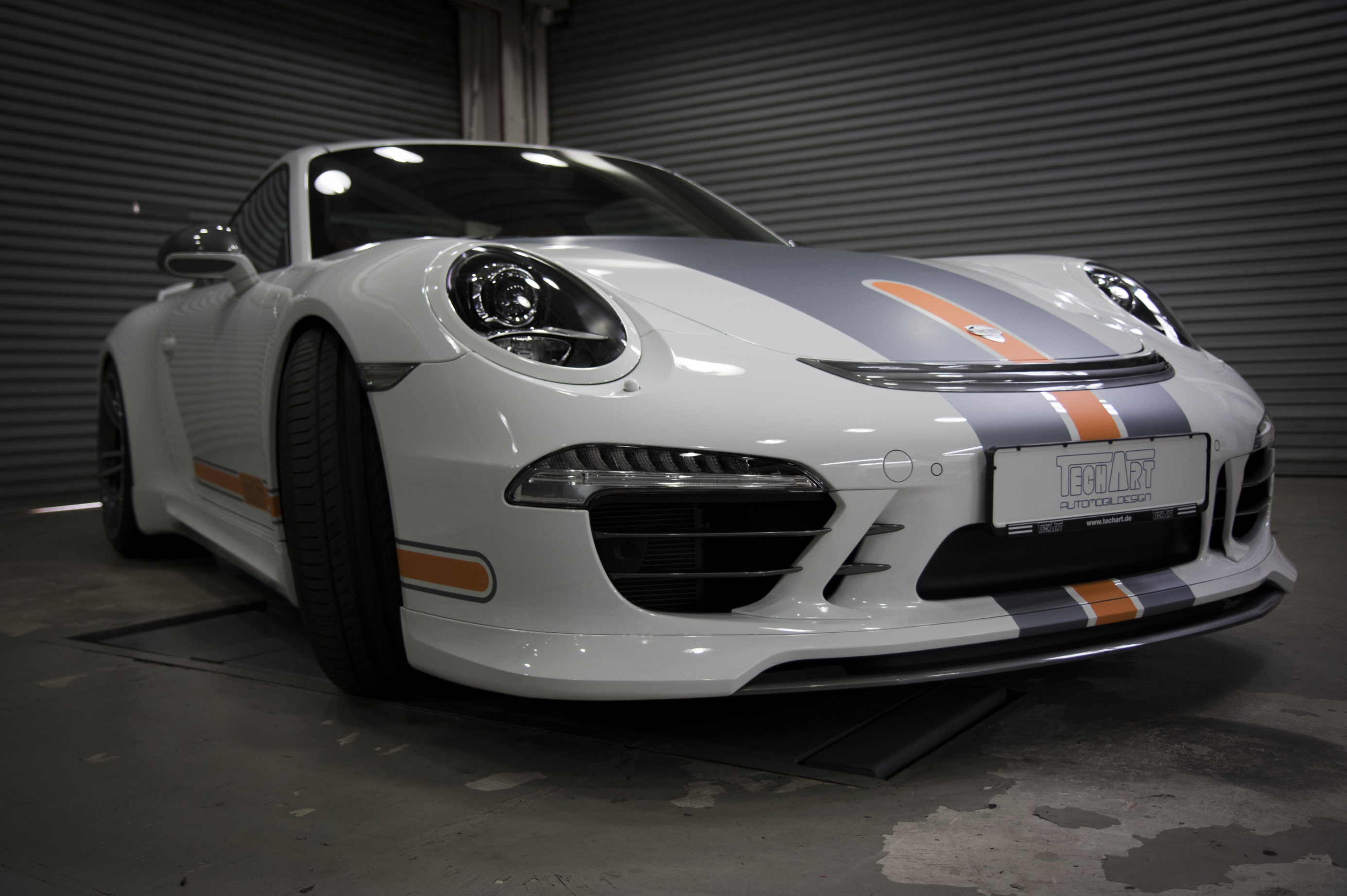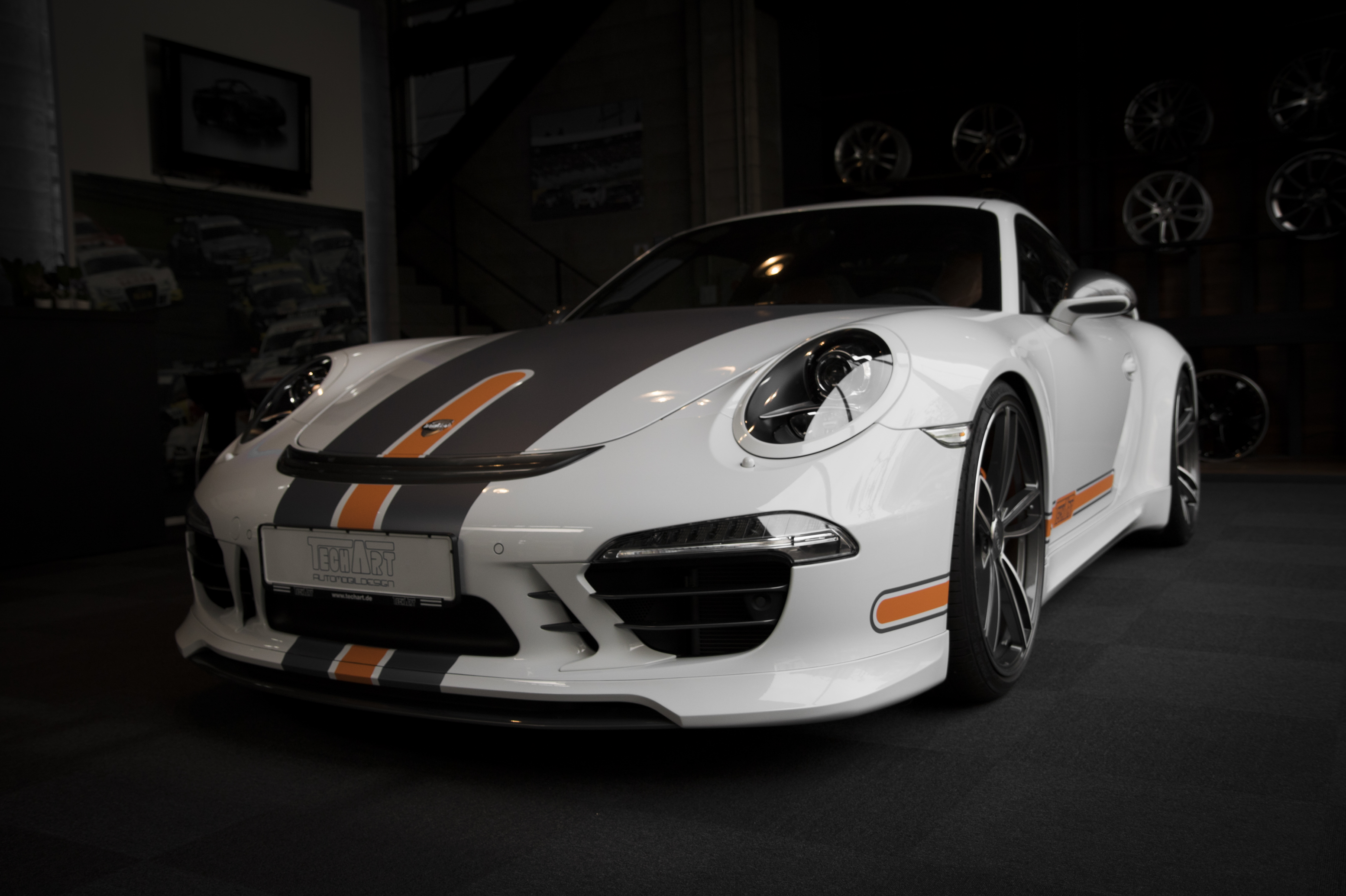 독일 TECHART 본사에서 코리아 에디션으로 특별 제작된 테크아트 컴플리트카로, 오렌지색으로 포인트를 준 테크아트 데칼과 인테리어가 눈길을 끕니다.